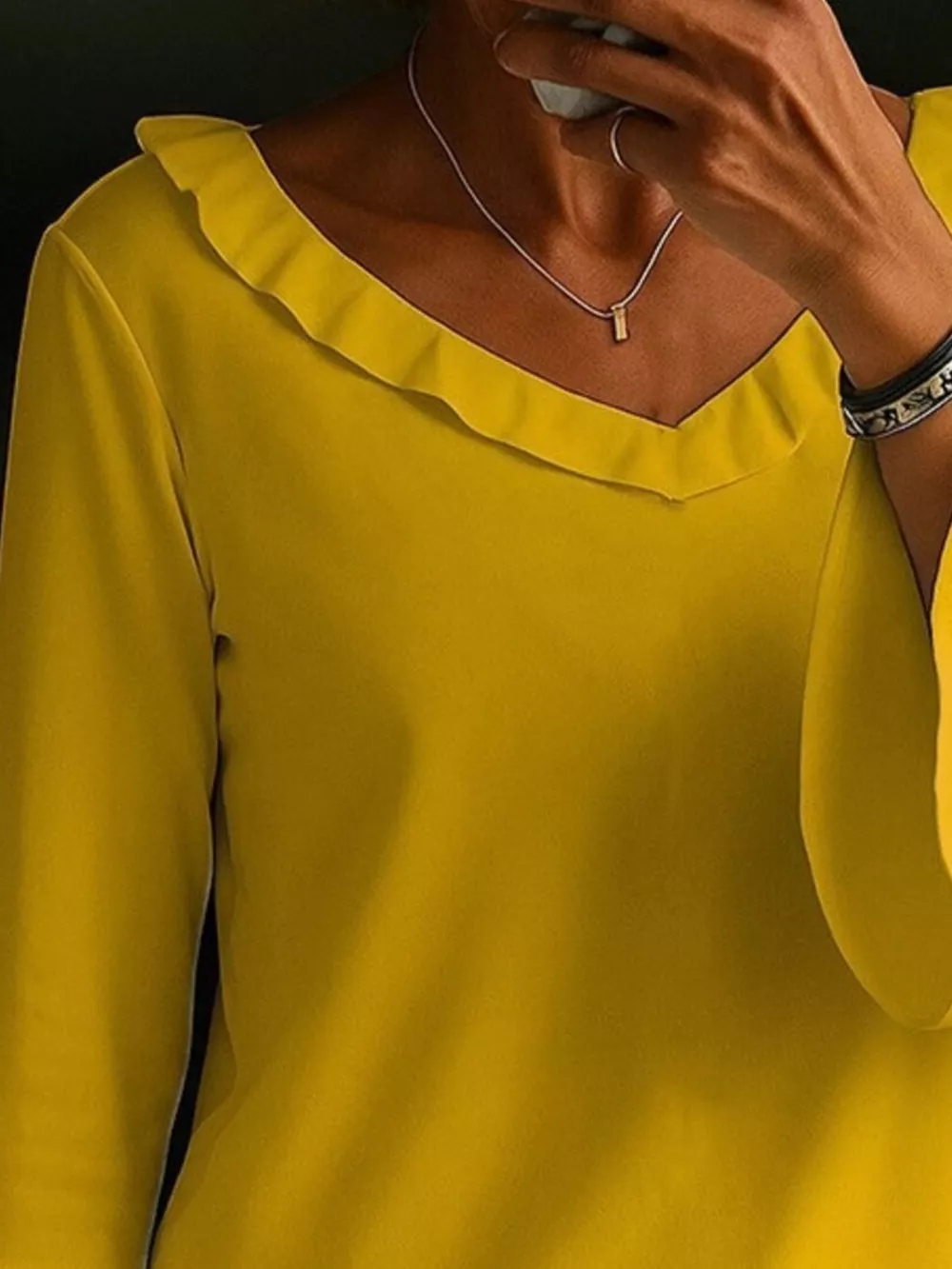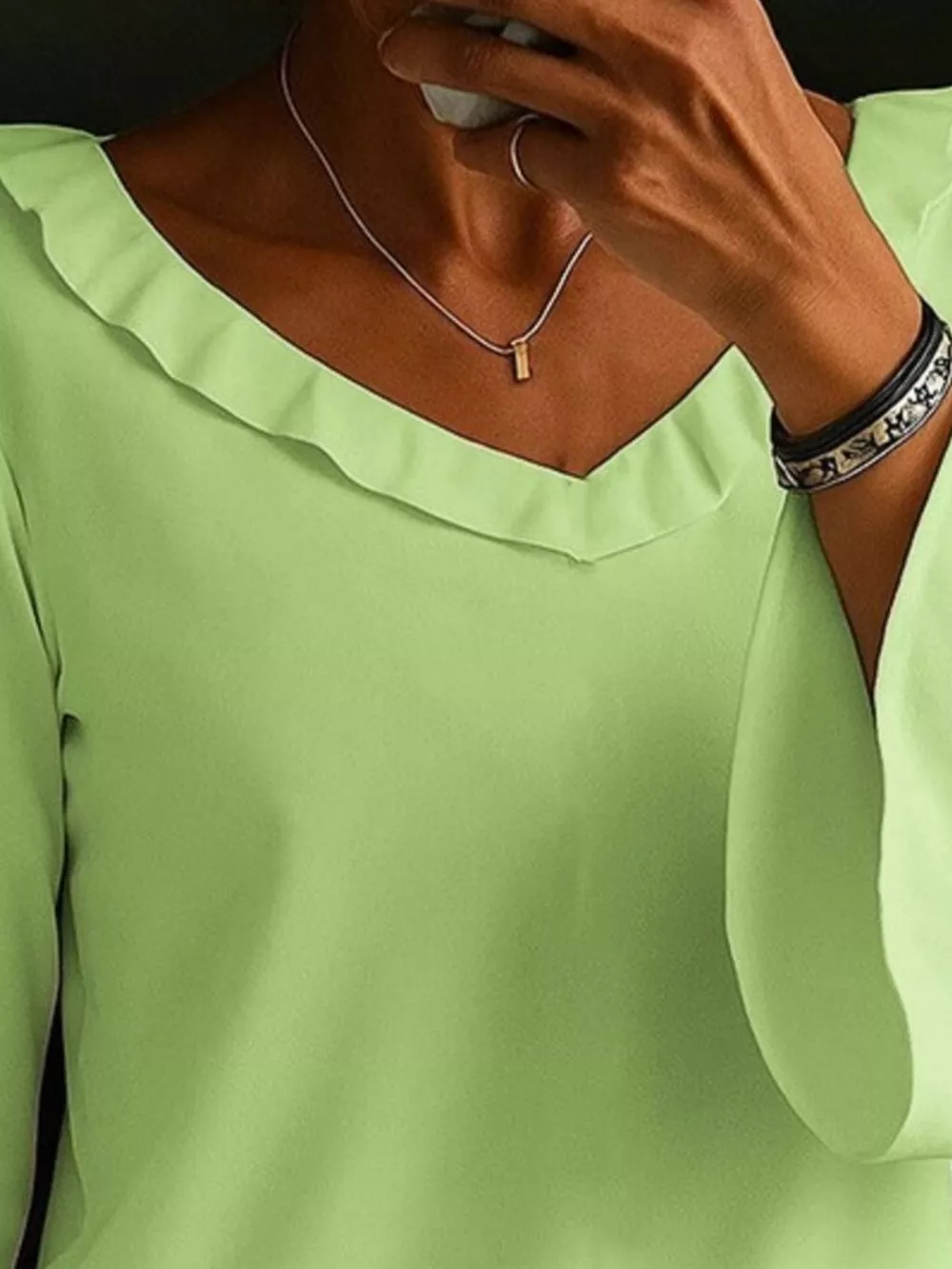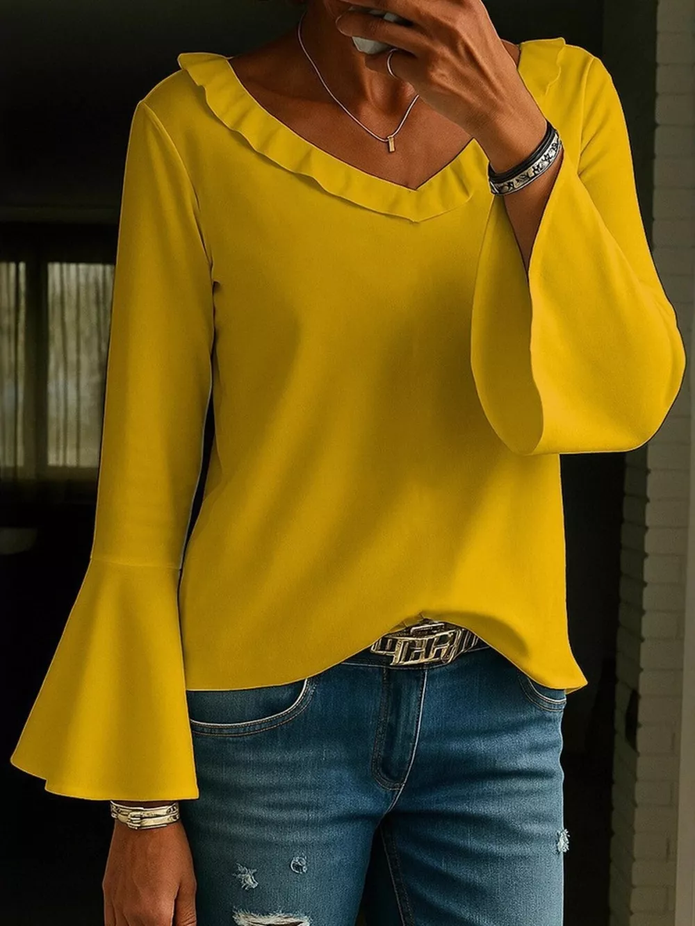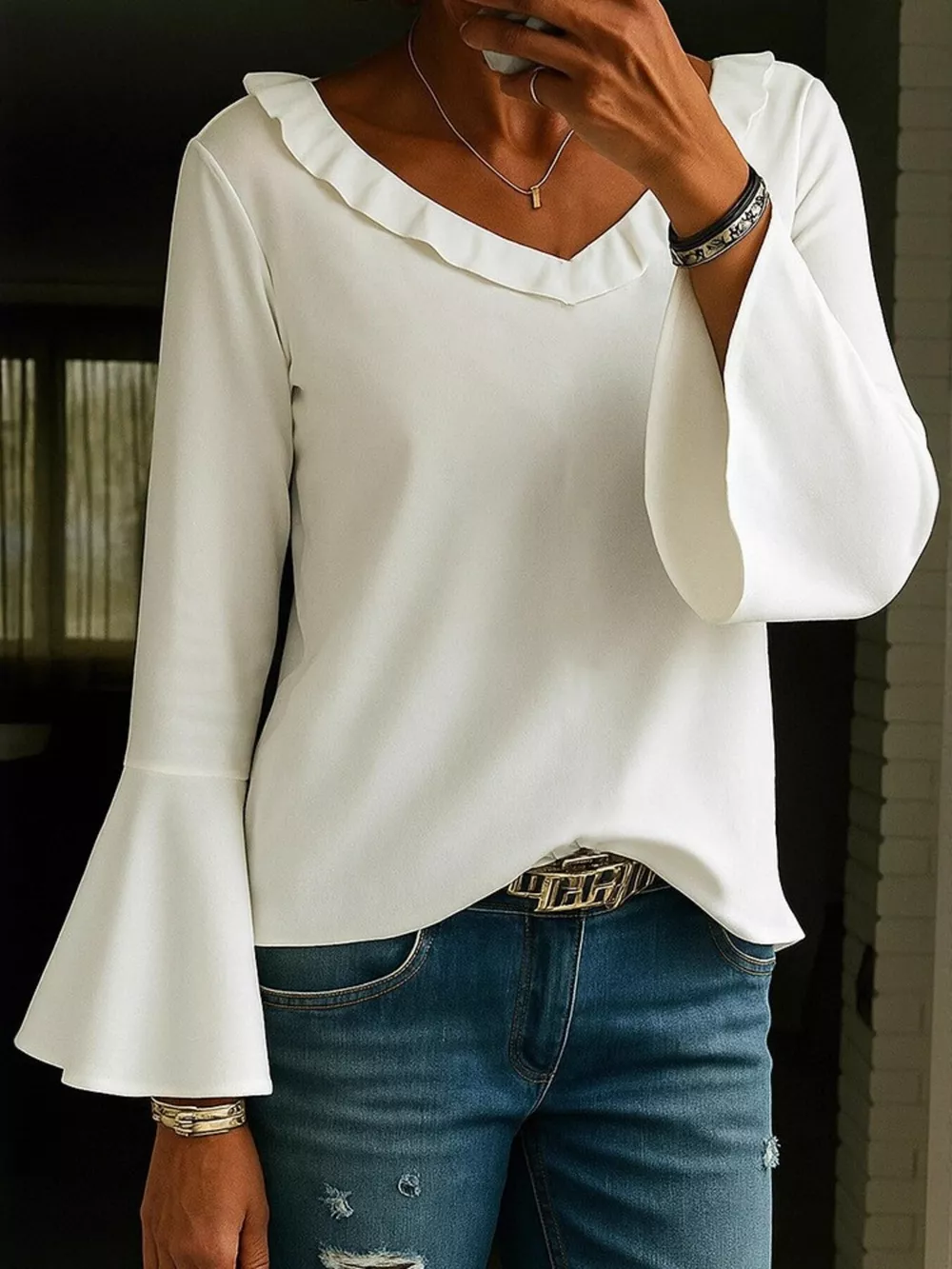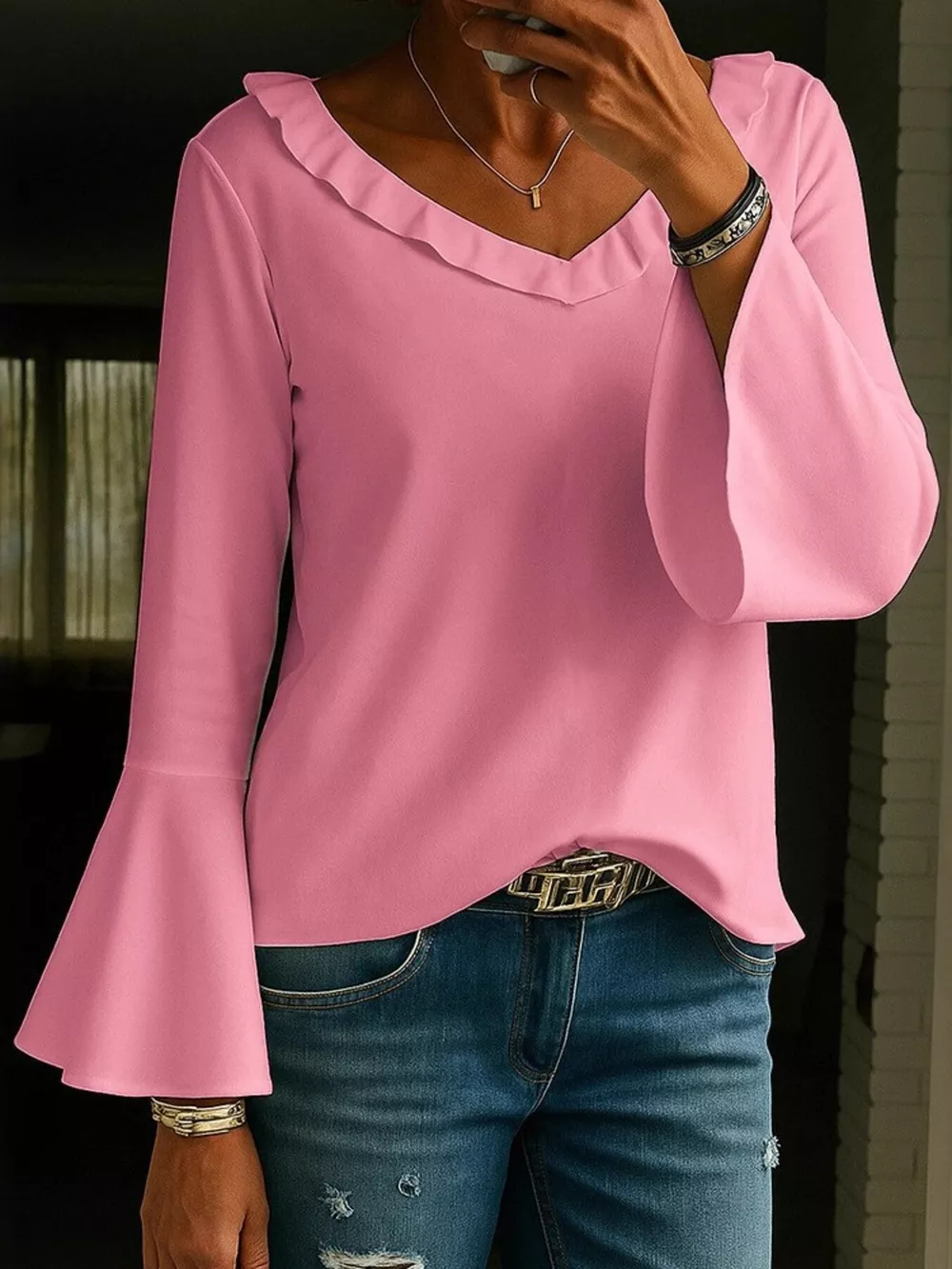 Full Size Ruffled V-Neck Long Sleeve Blouse Plus Size