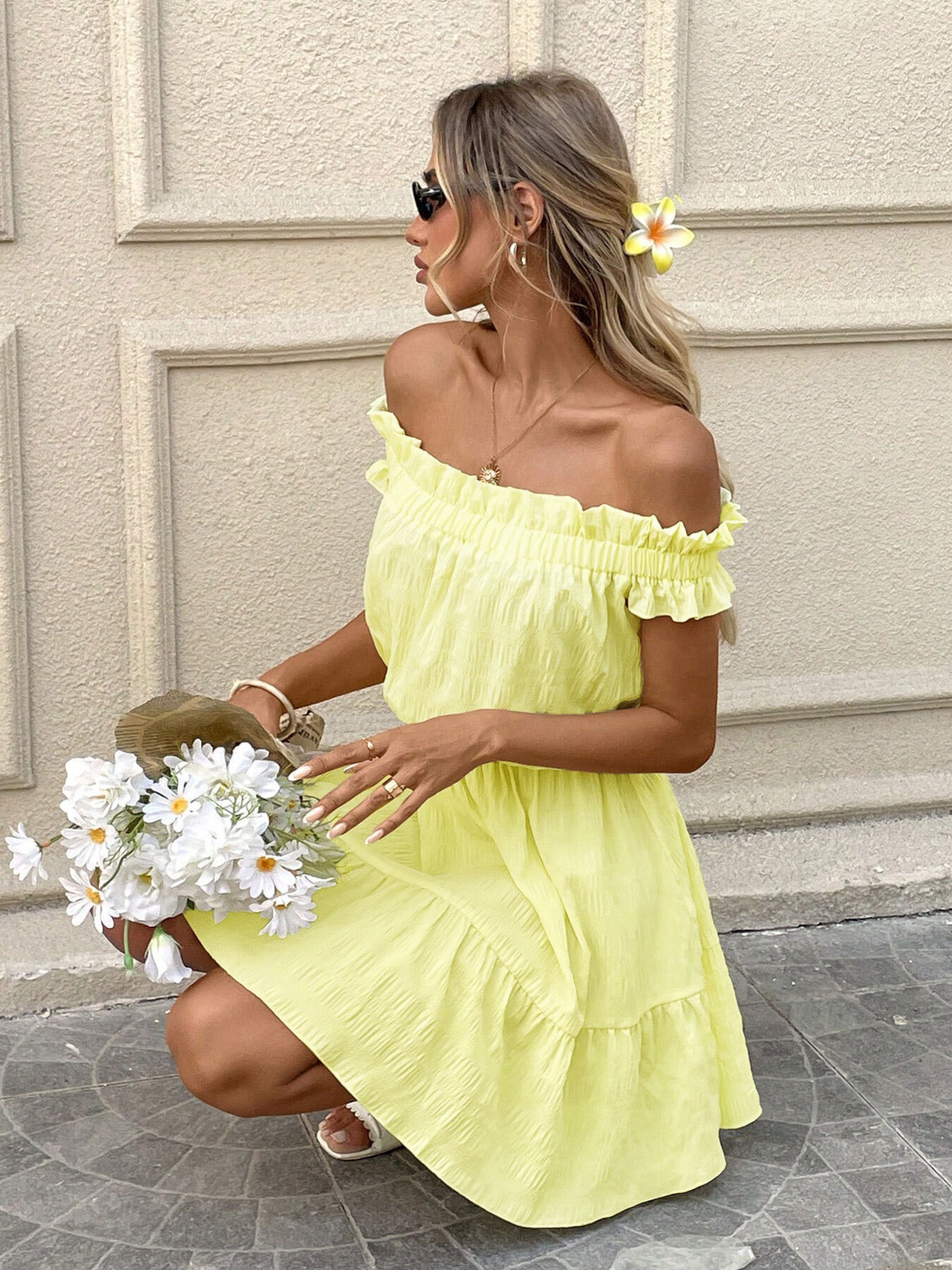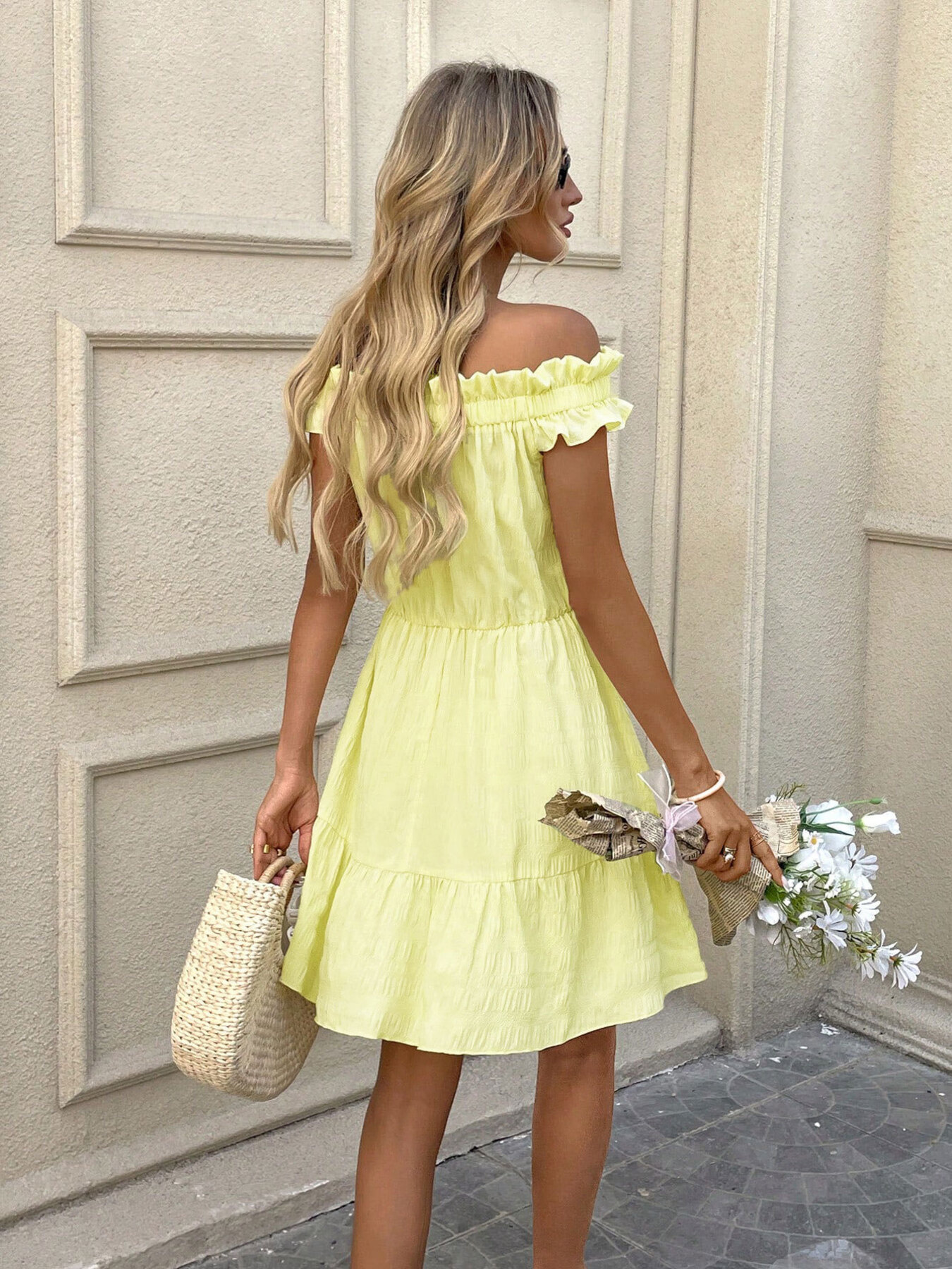 Off-Shoulder Ruffle Hem Summer Dress