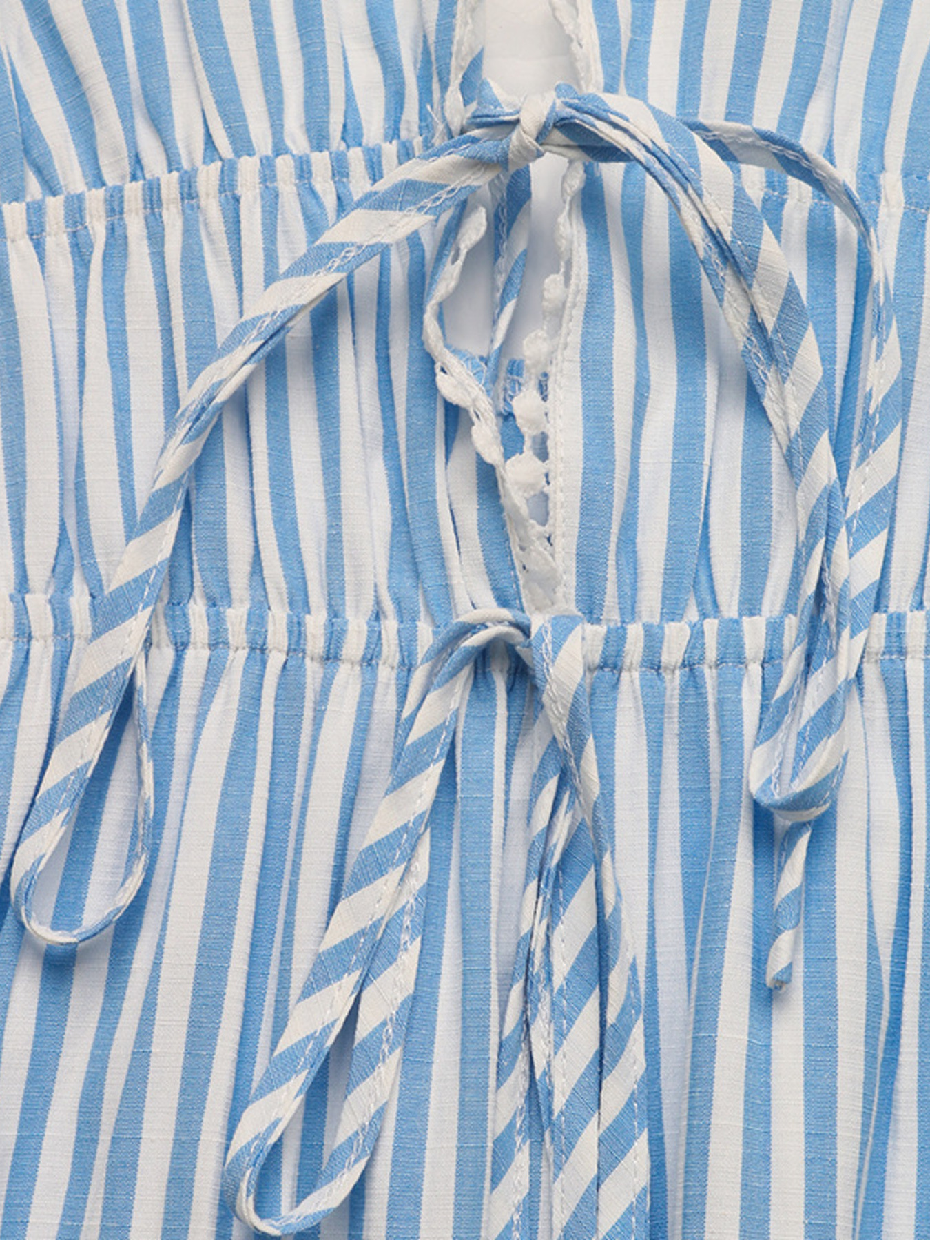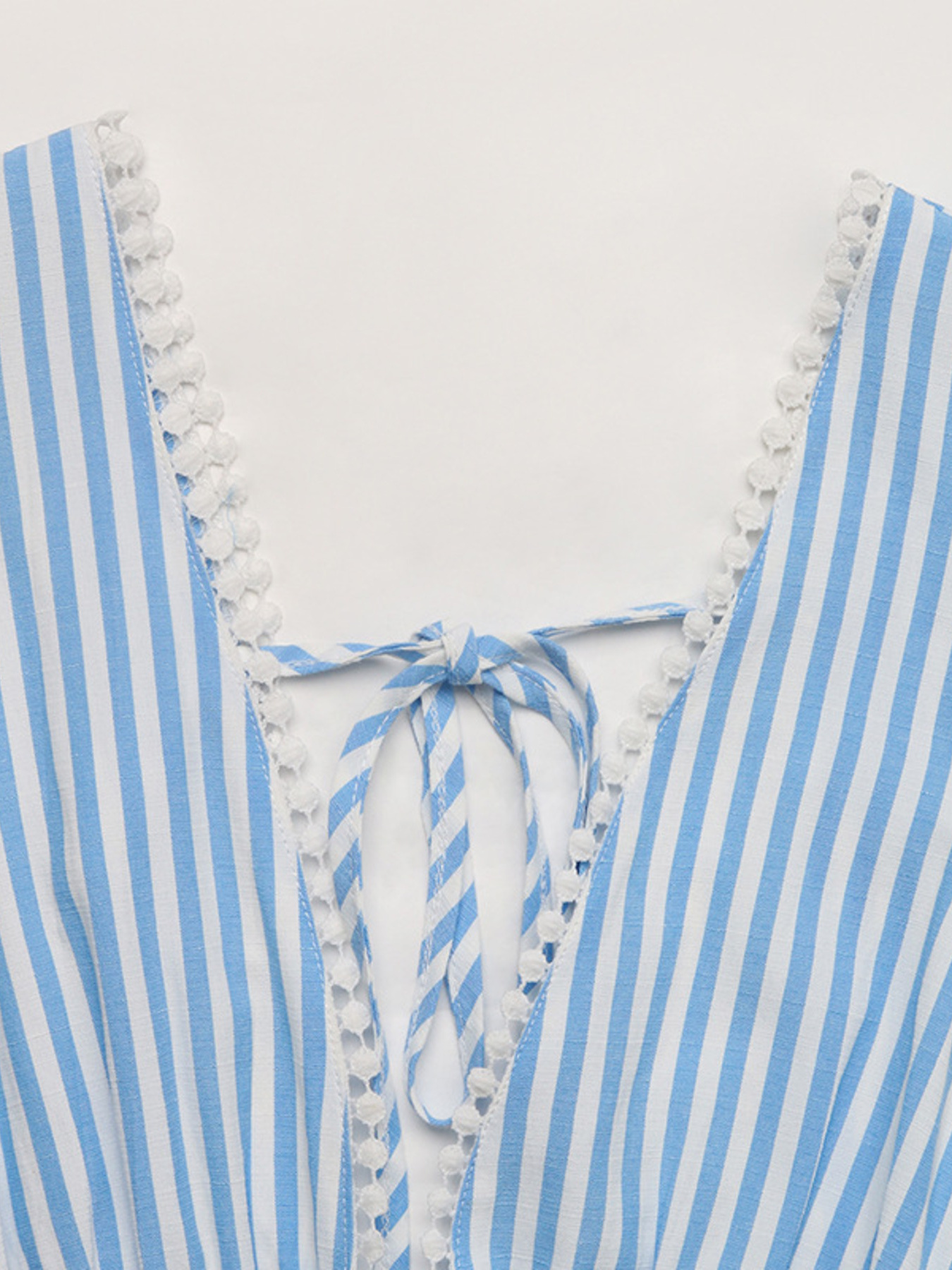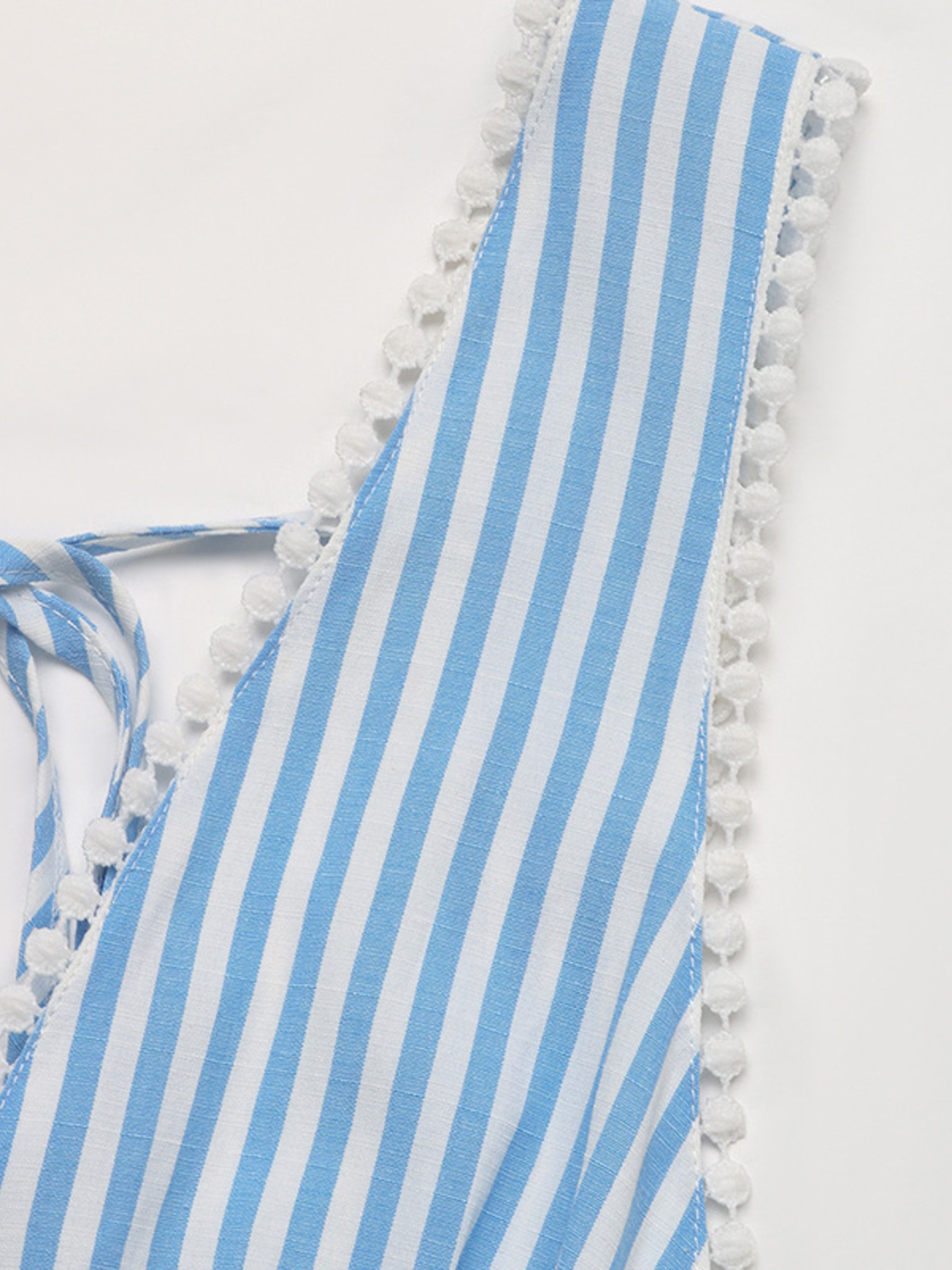 Striped Pom-Pom Trim Tie Front Sleeveless Mini Dress