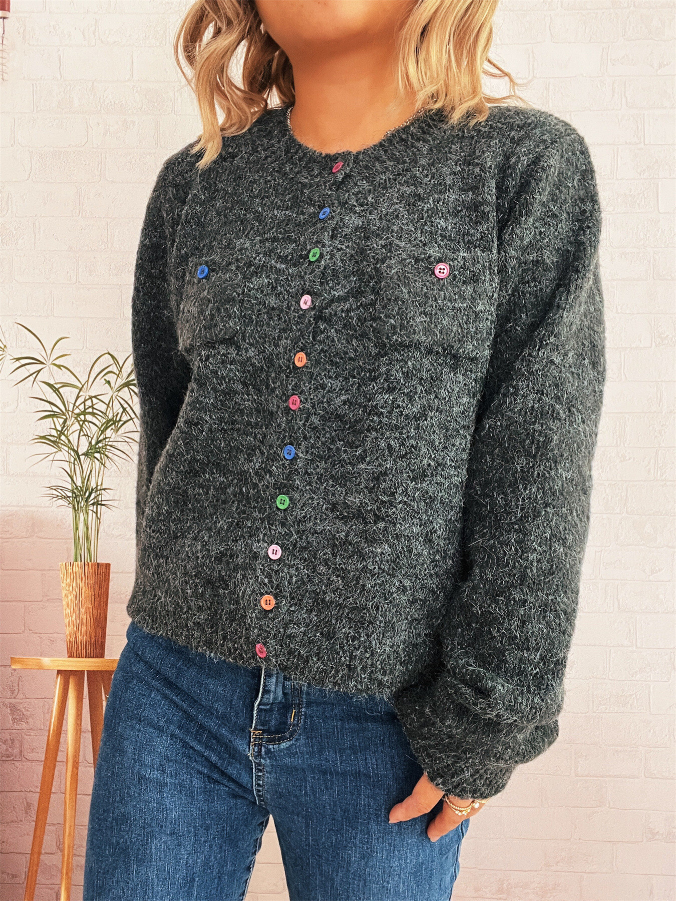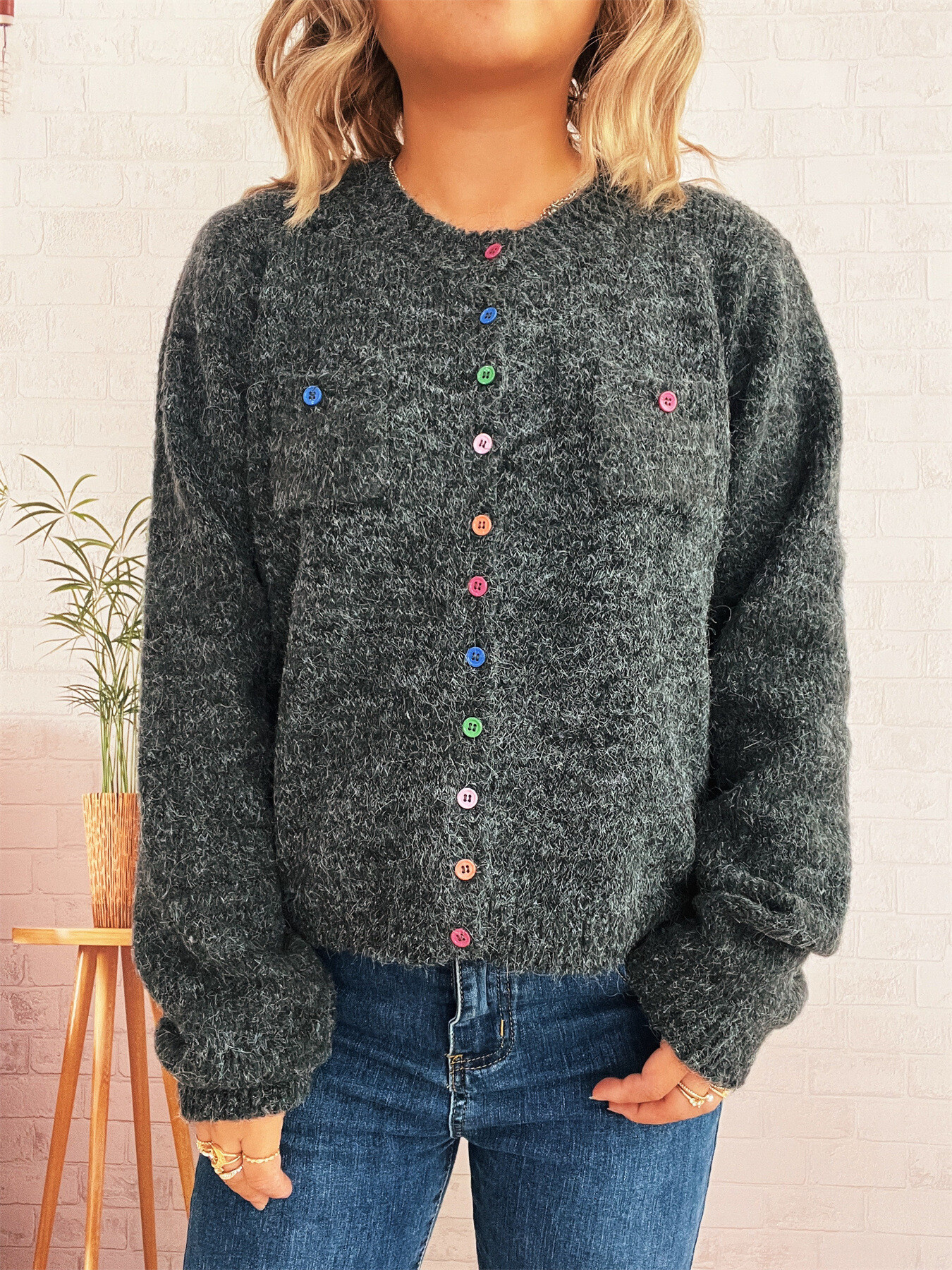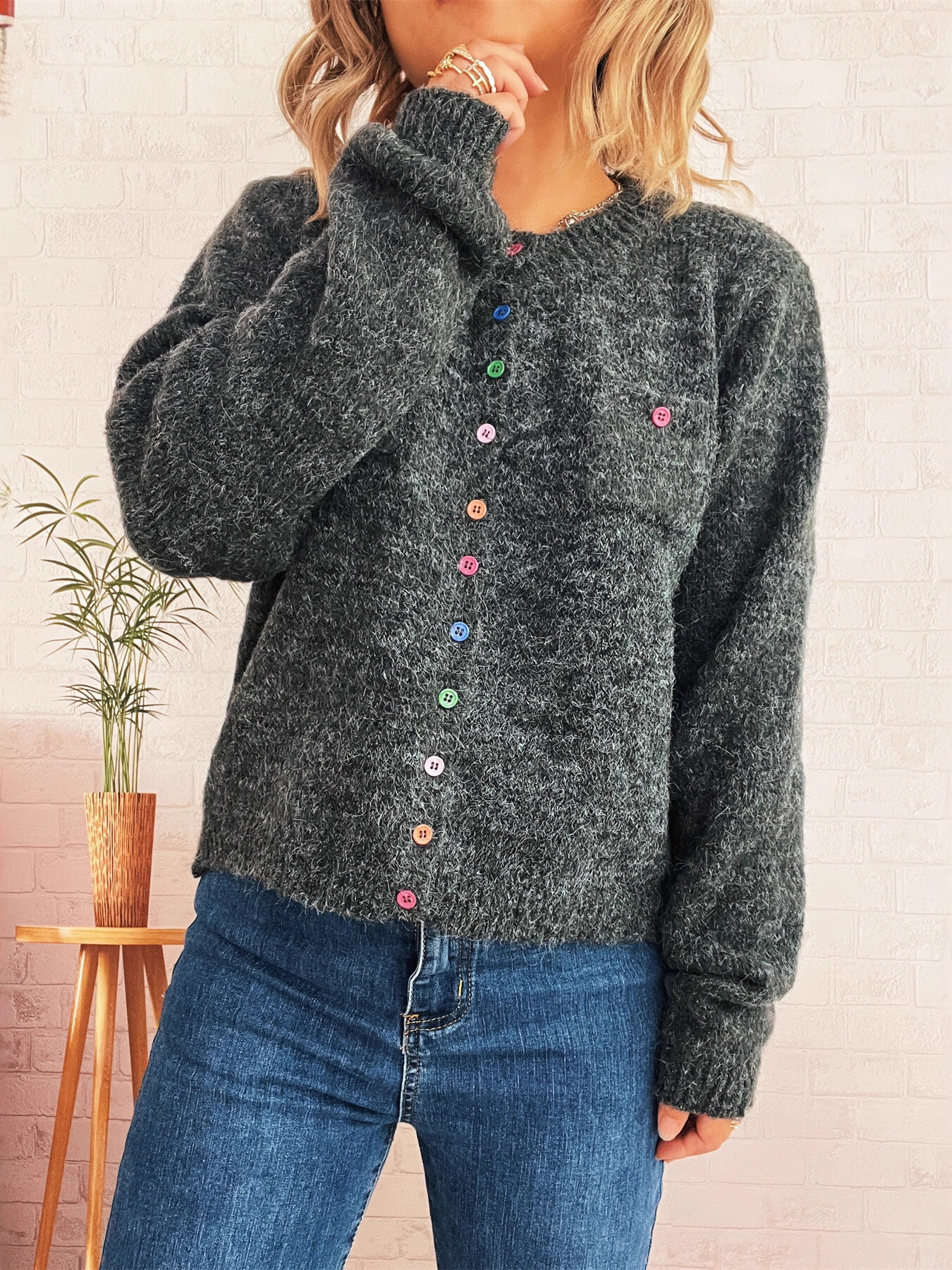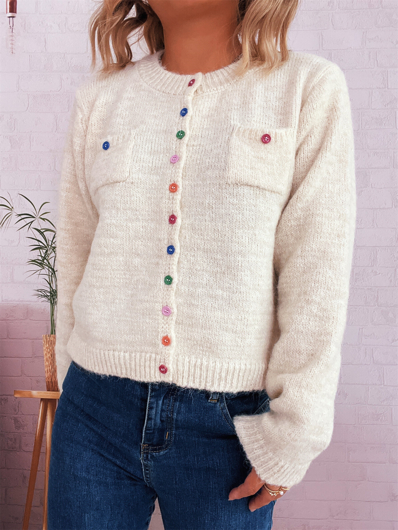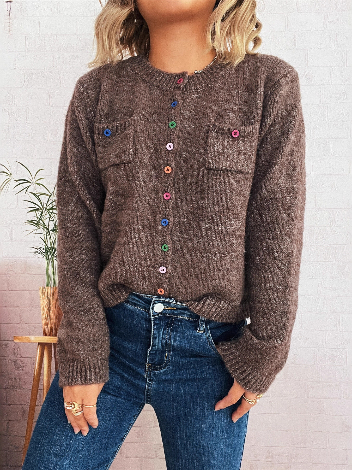 Button-Up Ribbed Hem Cardigan With Chest Pocket