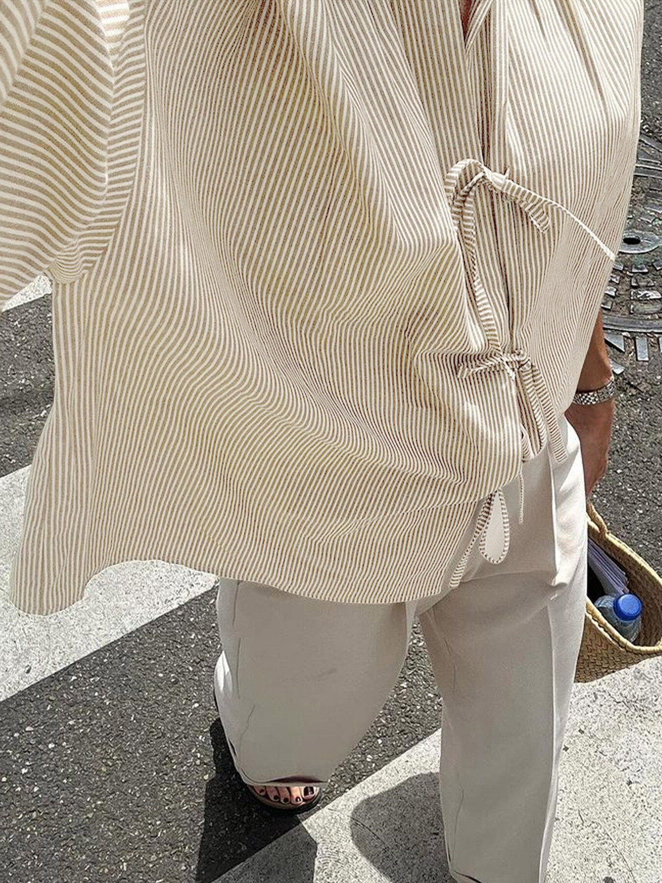 Striped Tie-Front Long Sleeve Shirt