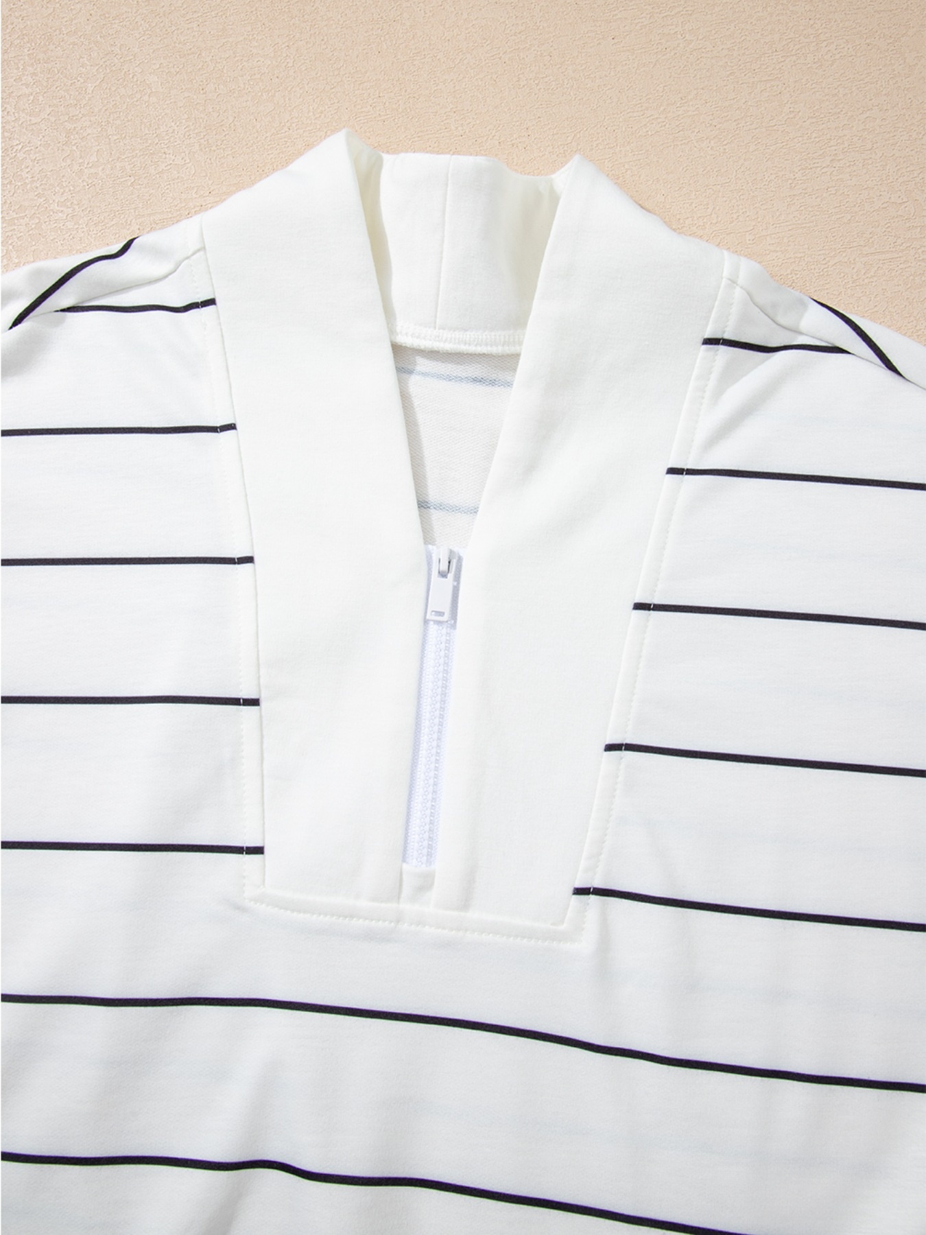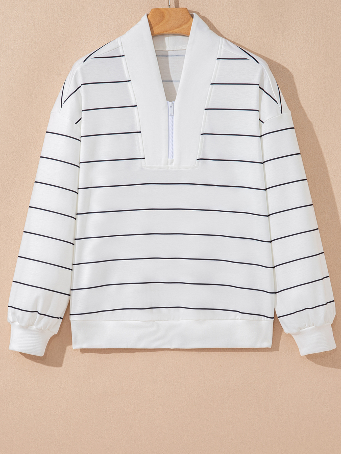 Striped Quarter Zip Sweatshirt With Relaxed Fit