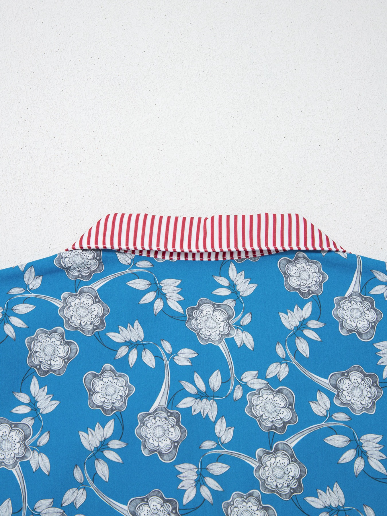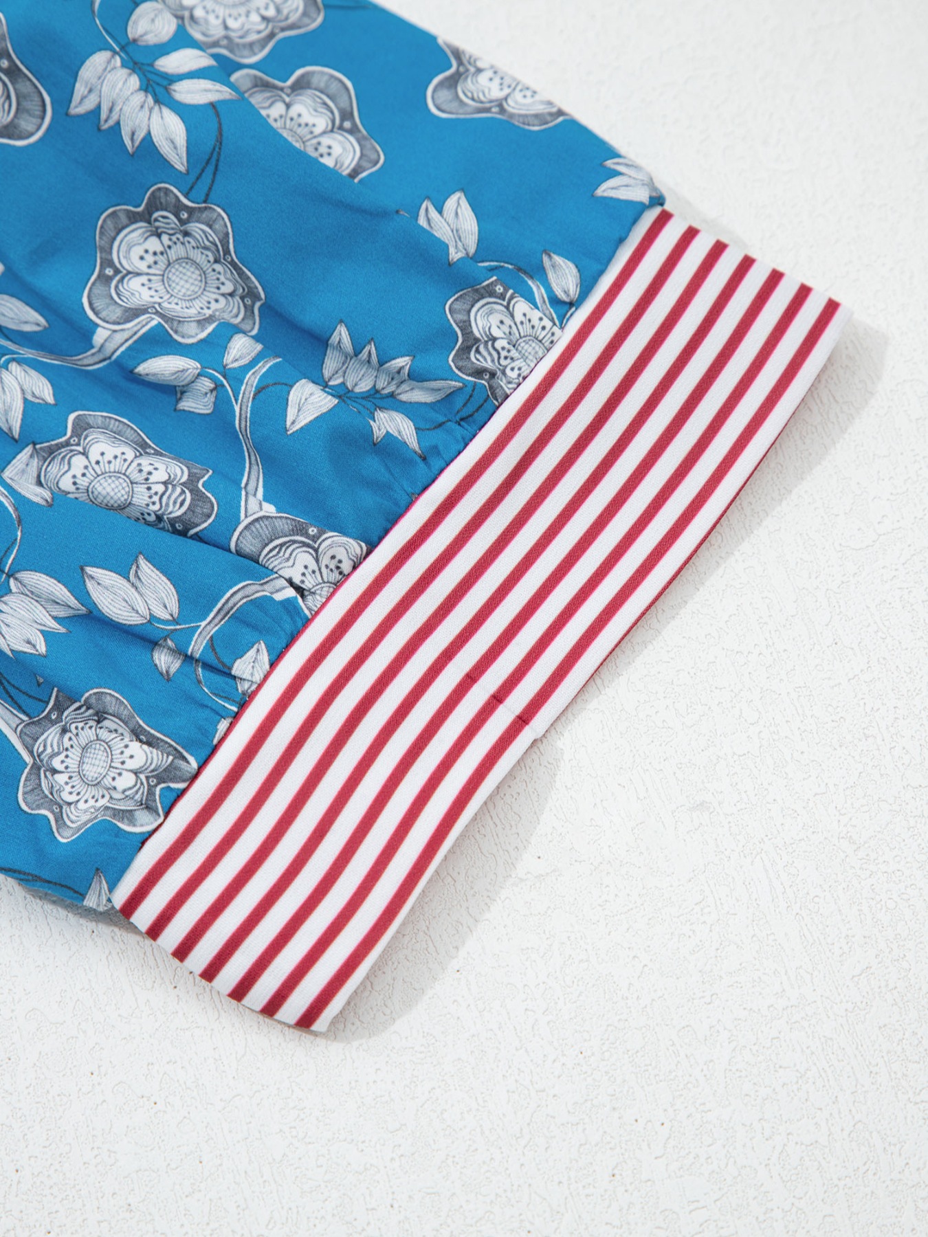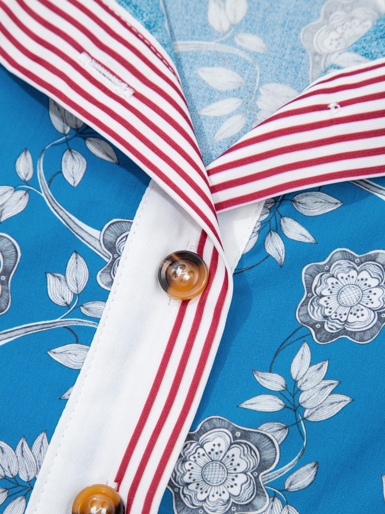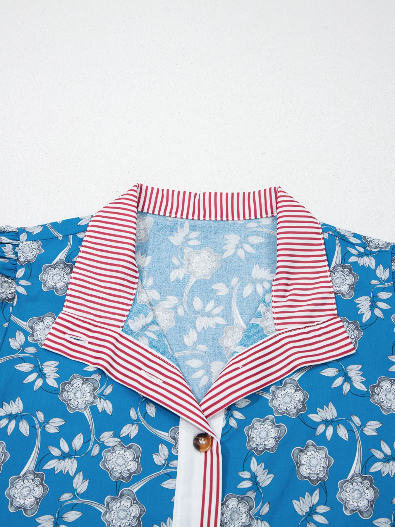 Floral Print Striped Trim Button Neck Short Sleeve Blouse