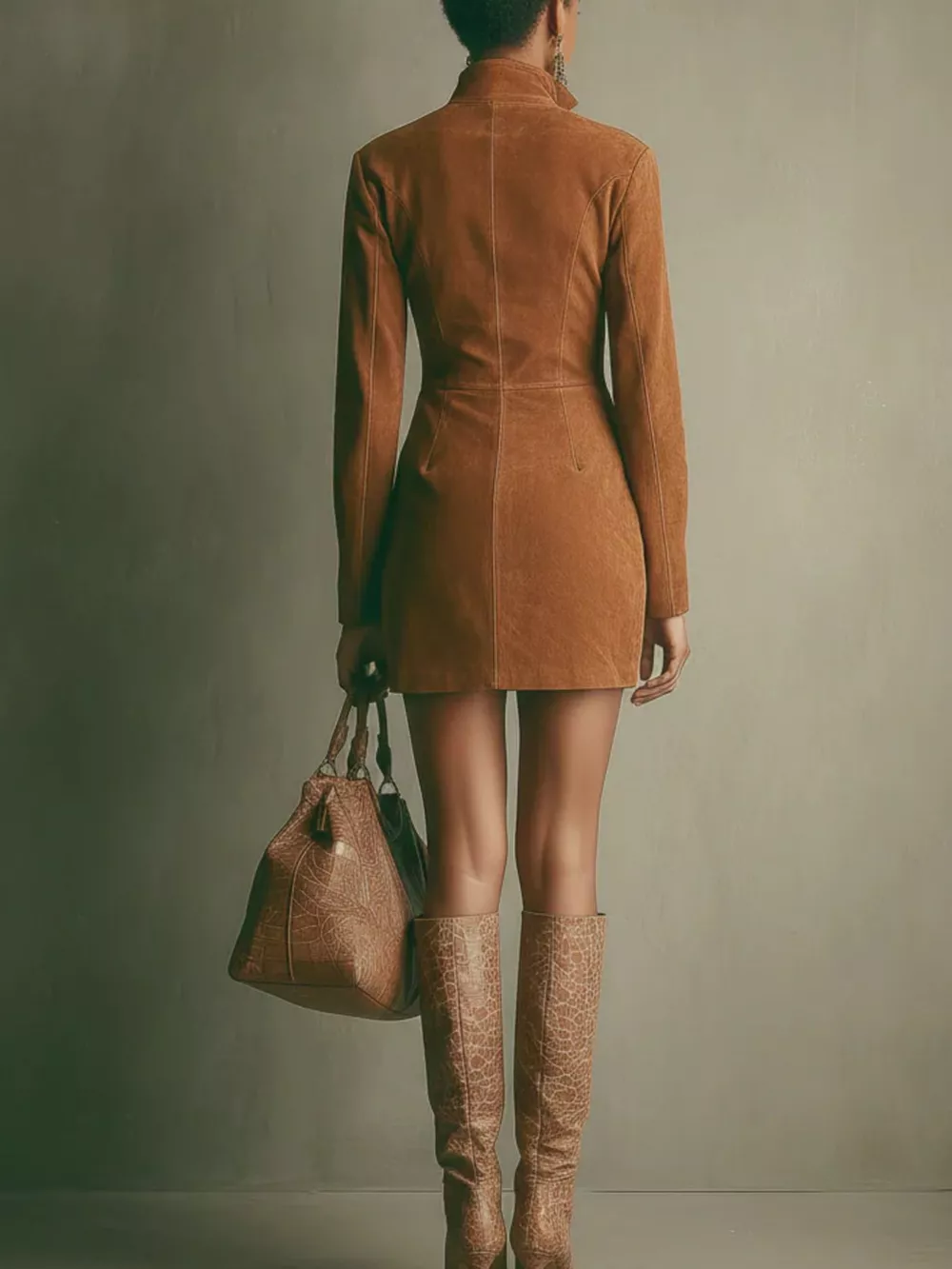 Full Size Zip-Up Long Sleeve Mini Dress Plus Size
