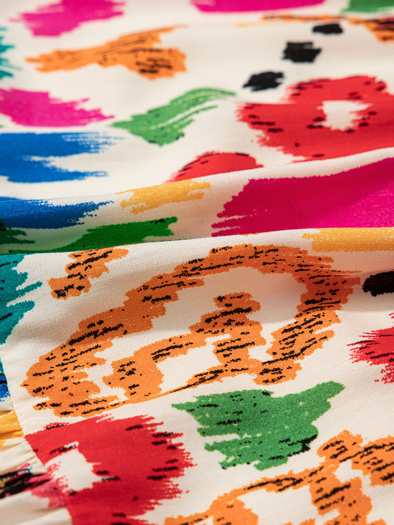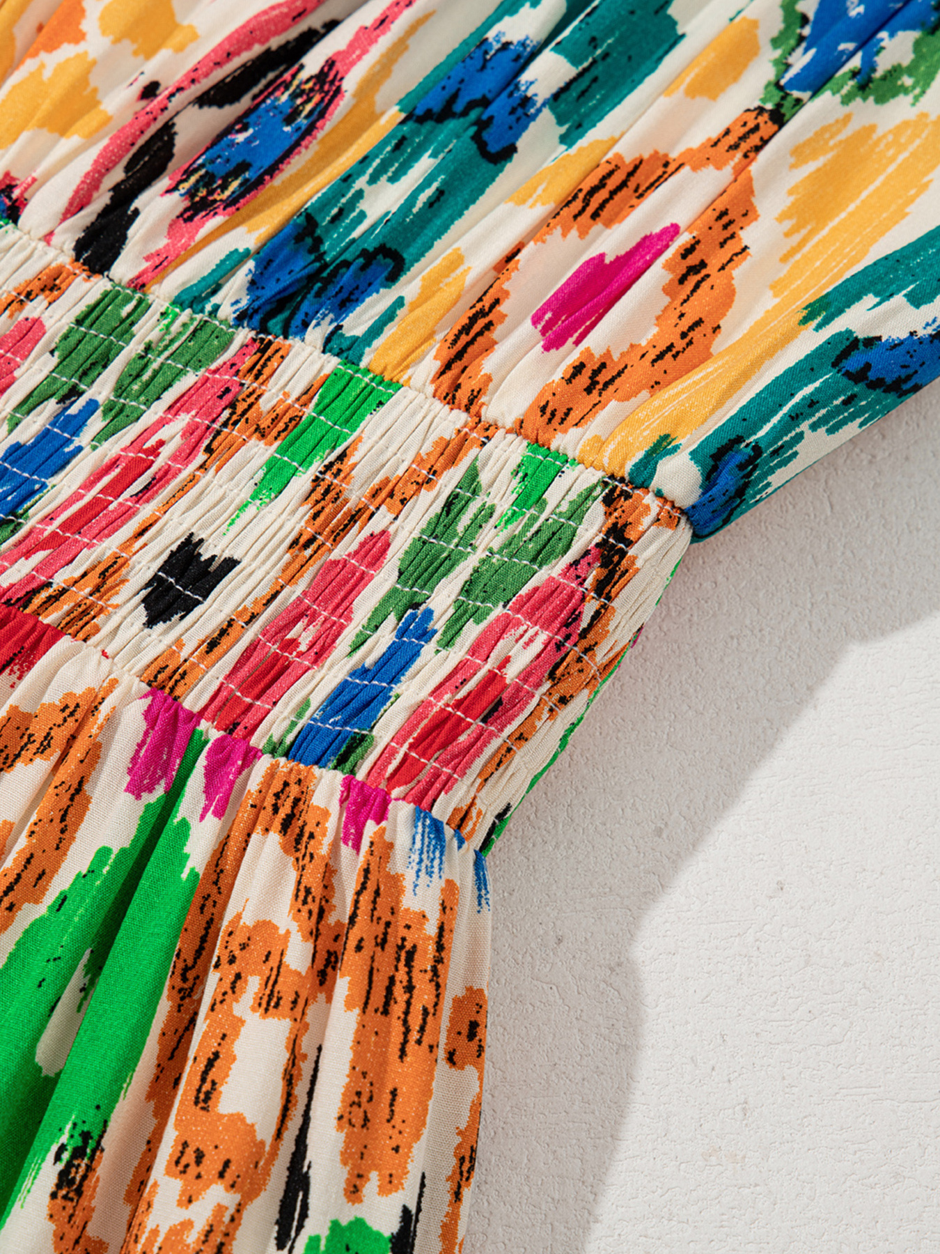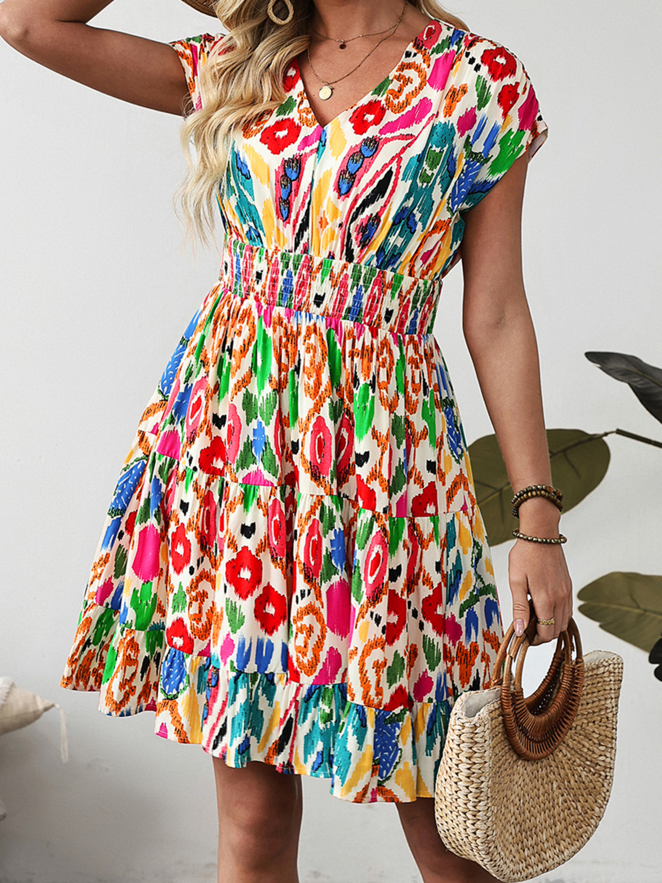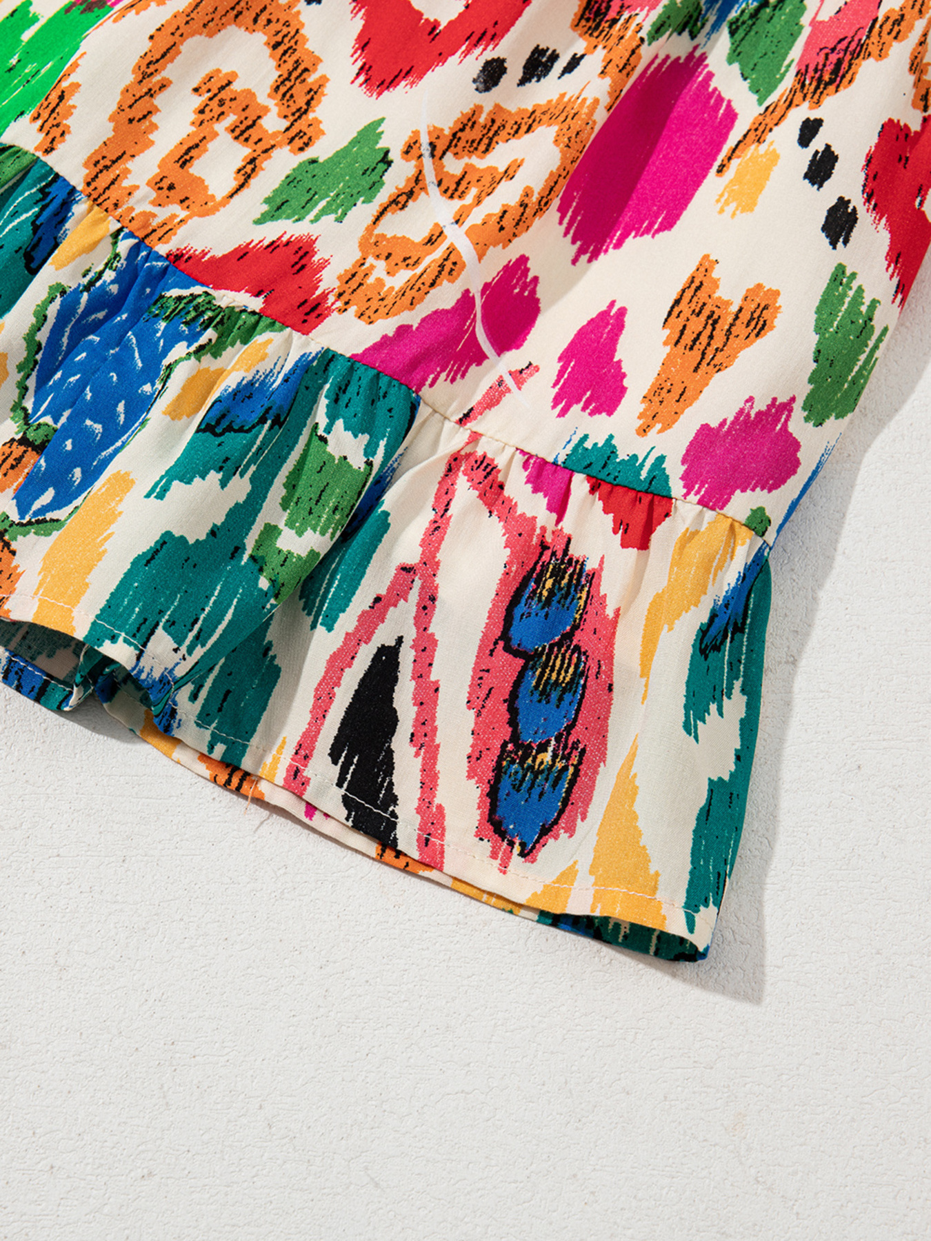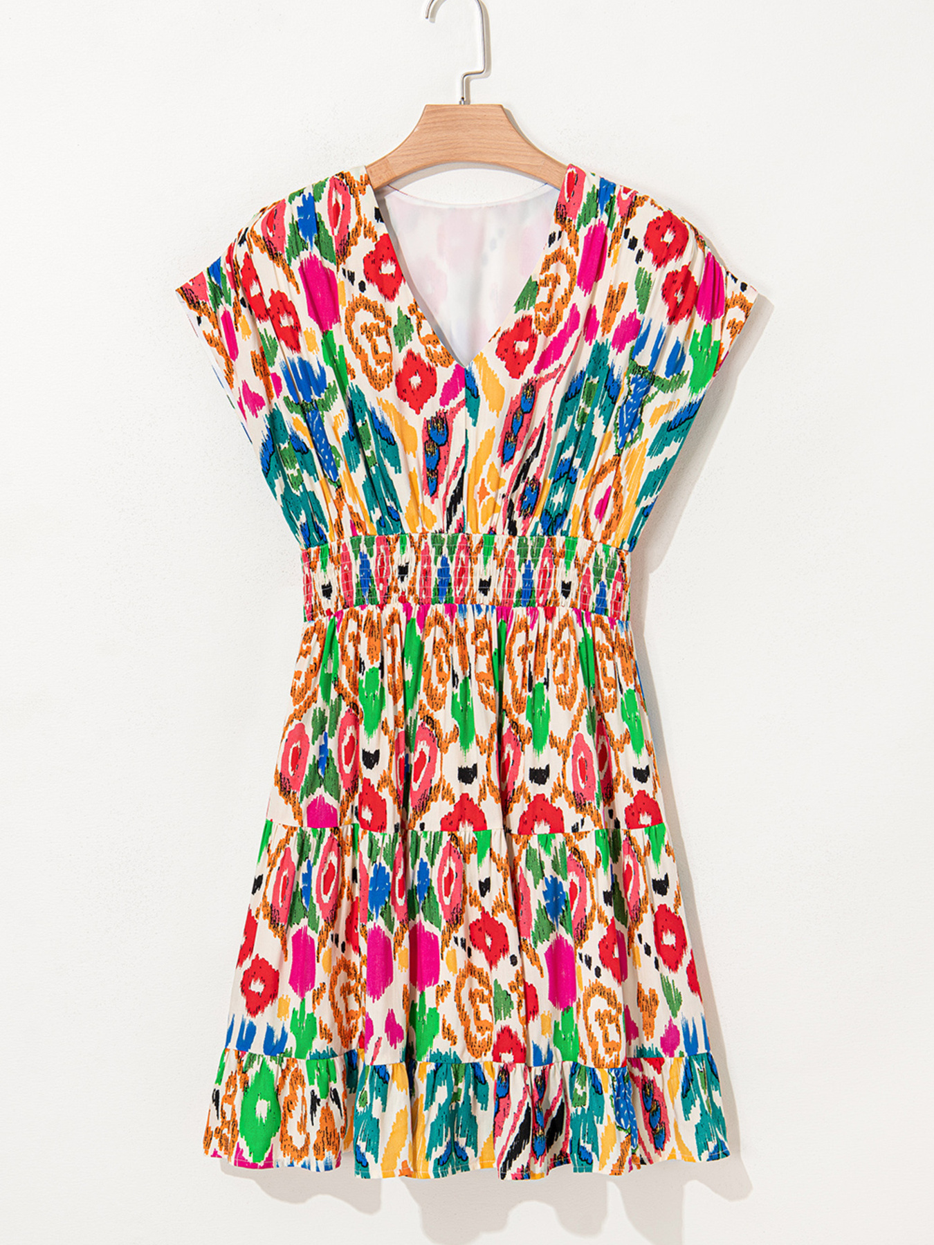 Abstract Print V Neck Dolman Sleeve Ruffle Tiered Mini Dress